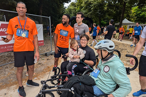 À noter la participation en fauteuil roulant de personnes en situation de handicap.