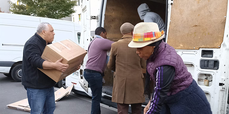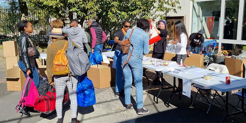 Collecte publique organisée par des associations ultramarines dans la ville de Nanterre, suite à la tempête tropicale Fiona en septembre 2022.